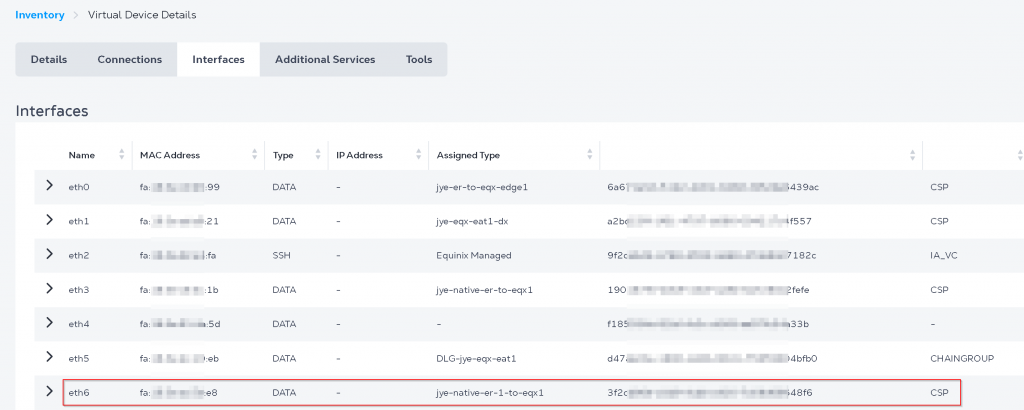You can also find EAT interface MAC address in Equinix portal -> Network Edge -> Virtual Device Inventory -> Select your EAT device -> Interfaces