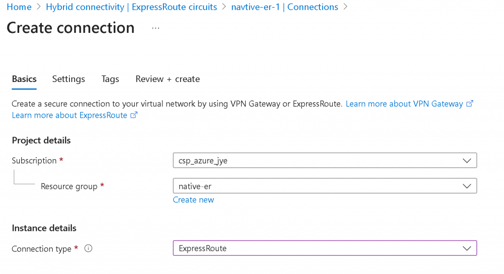 Click on Create a Connection to Azure Express Route